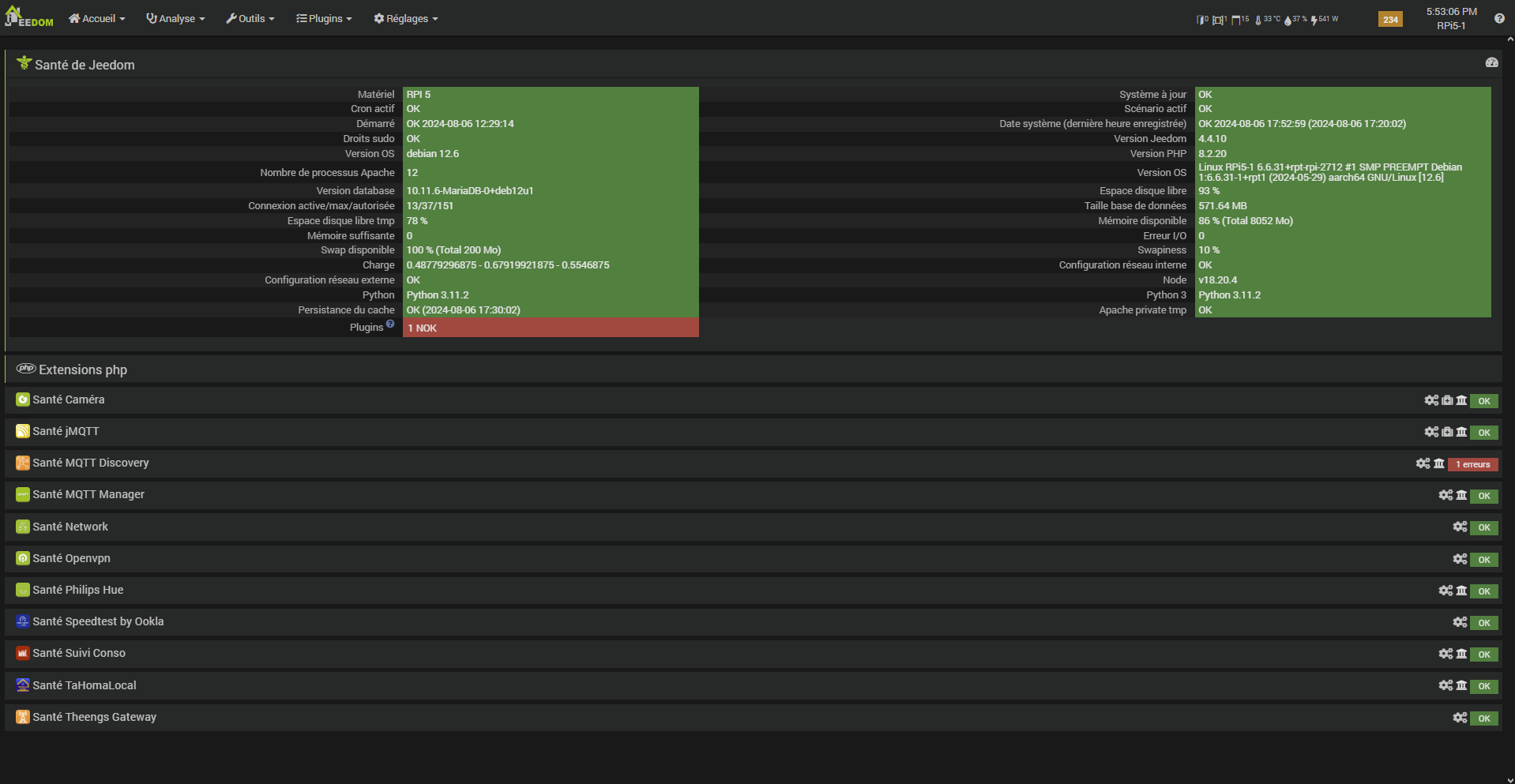 Comme j’avais un gros soucis de perte de Jeedom en lancant une mise à jour sous Jeedom Stable 4.4.9, je suis passé en Beta 4.4.10.