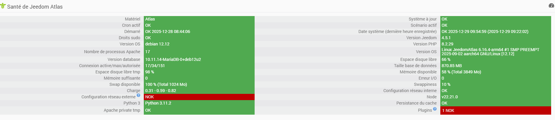 J’ai voulu migrer sur Jeezigbee (pour avoir des dispositifs homogène entre mon atlas et ma luna) mais cela n’a pas abouti faute d’avoir récupéré des devices opérationnels (malgré l’outils remplace) et surtout plus rien ne fonctionnait (ni zwave ni rf)…bref malgré un restauration de la sauvegarde plusieurs redémarrages, une relance de tout les dépendances et un temps d’attente long, rien ne fonctionnait et ma page santé m’indiquait une charge de plus de 2 et l’atlas mettait des plombe à repondre à la moindre instruction d’ouverture de page