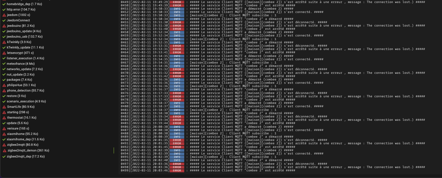 depuis quelques jours j’ai des messages plusieurs fois par jour me disant que le demon de zigbeelinker est arreté ainsi que celui ci