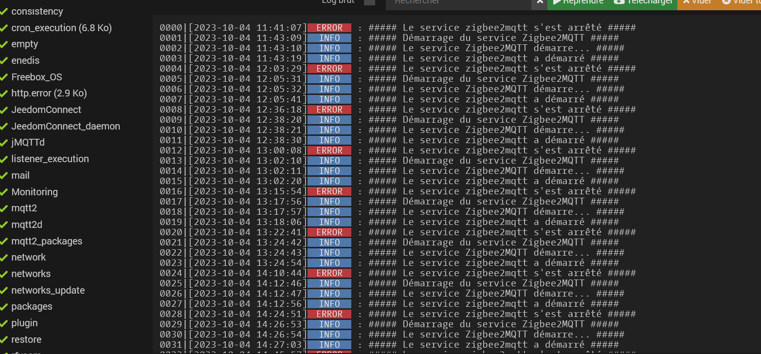 J’ai pas réussi a « choper » les mouvements en ERROR, mais j’ai décoché dans « MQTT Manager (mqtt2) - stable » : —> Transmettre tous les evenements