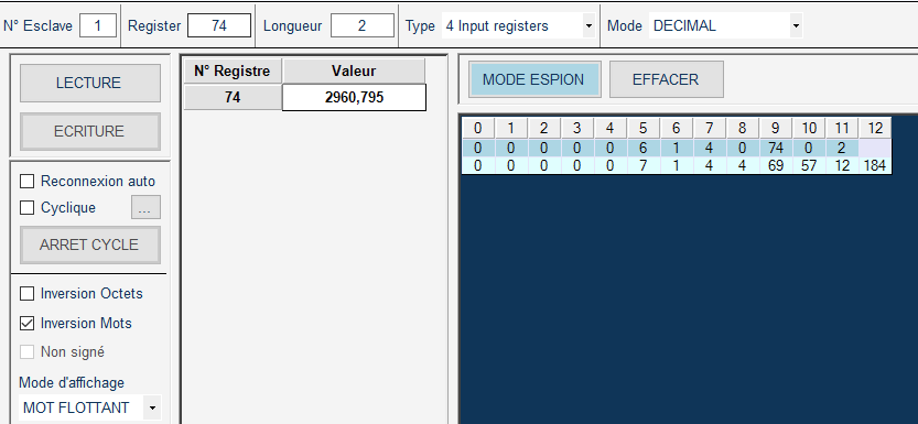 J’ai un peu de mal à voir ce qu’il faut utiliser pour aller lire une valeur qui demande cette configuration dans modbus doctor :