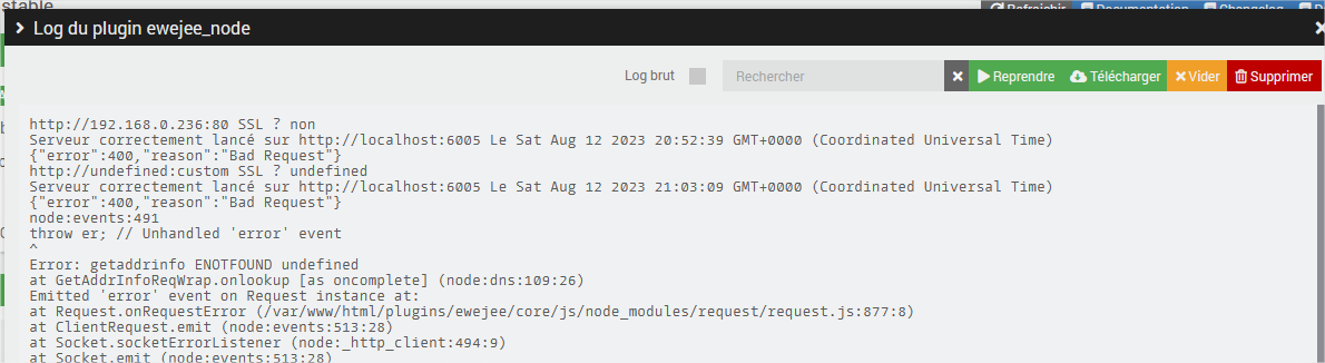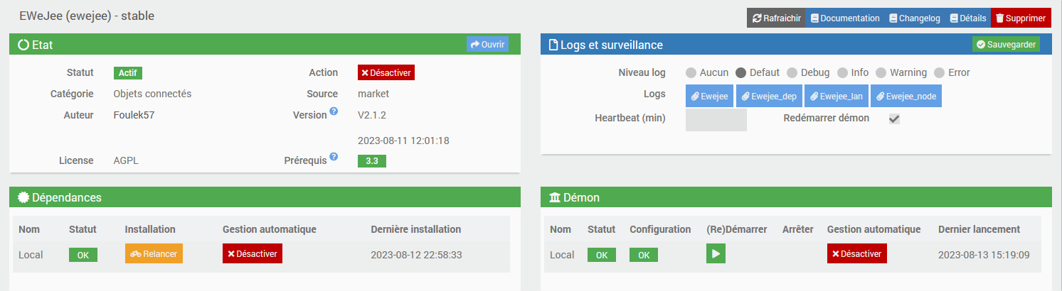 → En passant en « lan » les équipement + réglage « lan » sur le plugin + port custom :80