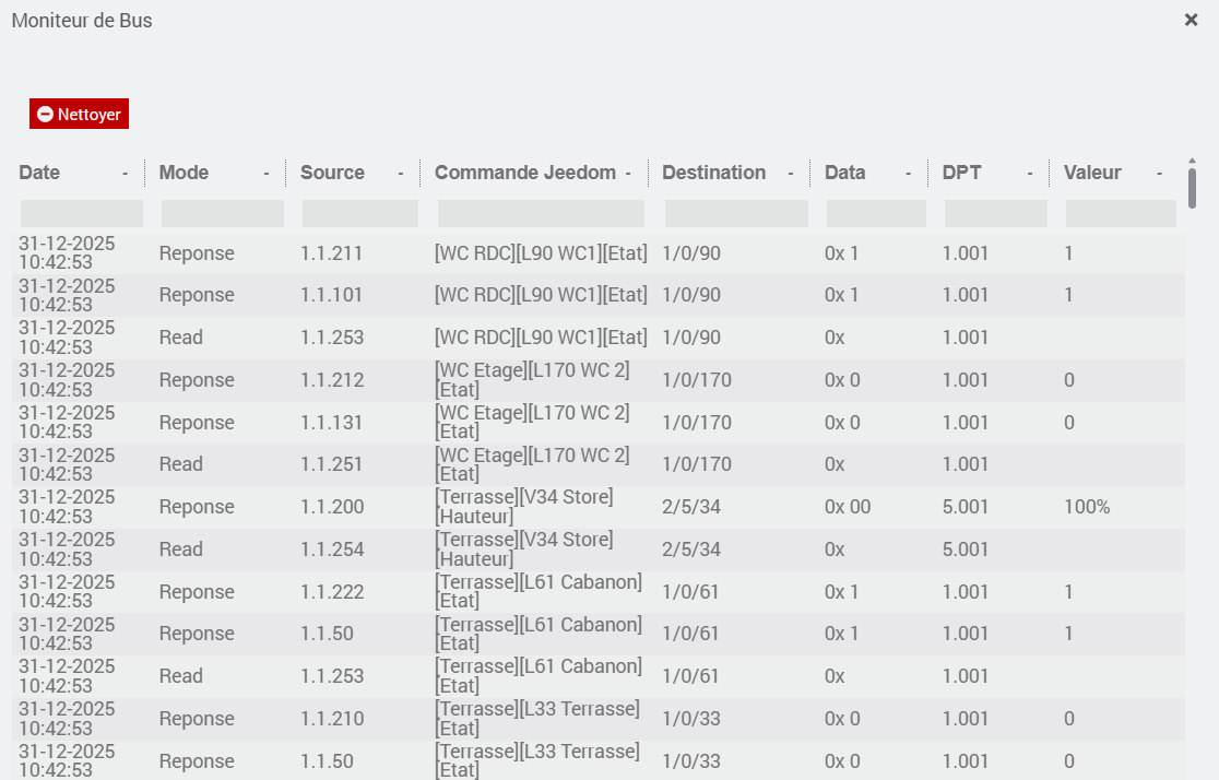 je viens de voir un truc de bizarre sur mon moniteur de bus KNX du plugin. Il y a plein de Read sur mes équipements KNX et réguliés et de suite il y a 2 ou 3 réponse au Read donc ça fait beaucoup de trames sur le bus ???