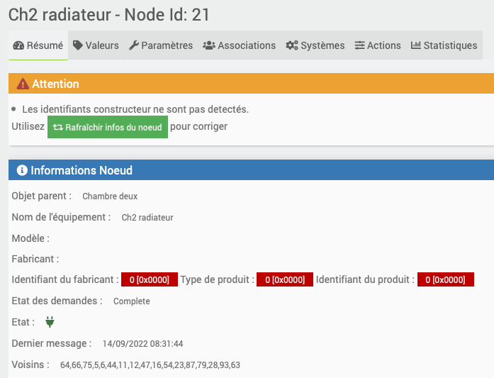 compte tenu du nombre de neud 18 et des scenario ou script lié je peux difficilement tenter de suprimer et redecouvrir les neuds …si je perd les ID des commandes c est trop long et compliqué a refaire …