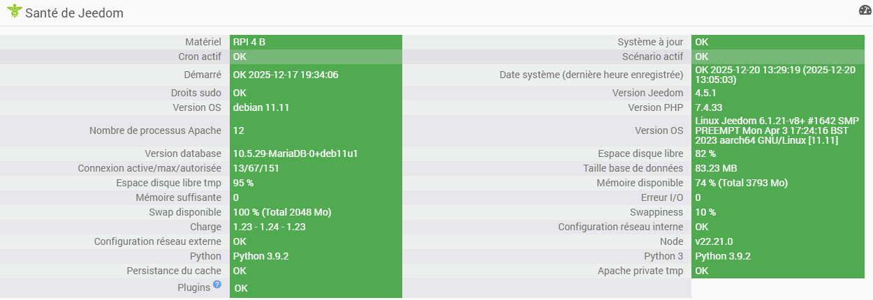 Informations Jeedom