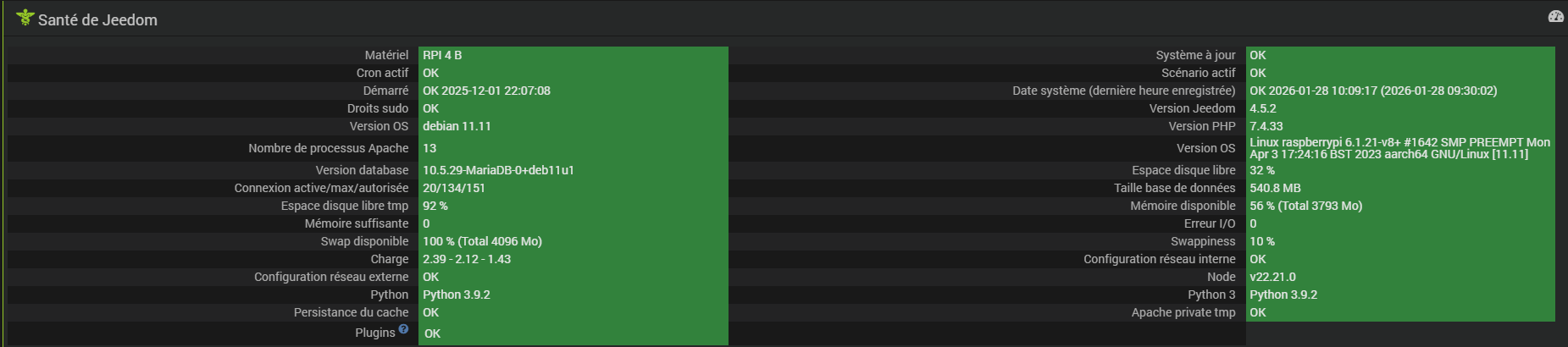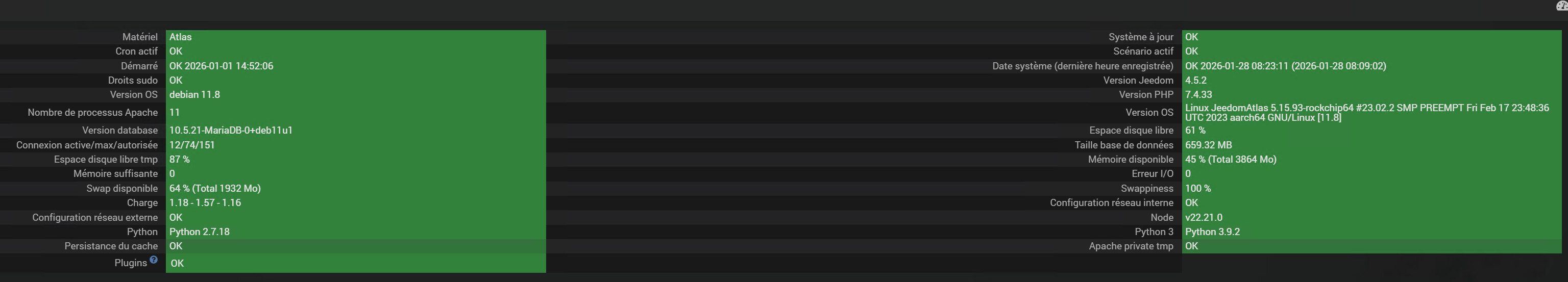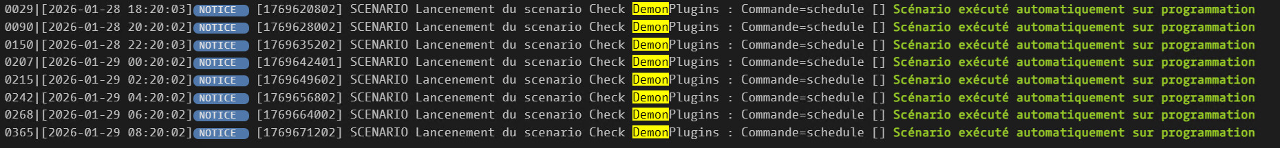 hier, j’ai décalé le programmation du scenario Check DemonPlugins, qui tombait à 4h00 mais qui n’était pas présent dans le log (présent dans mes message telegram)