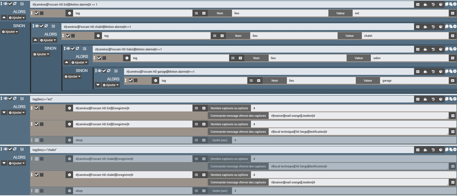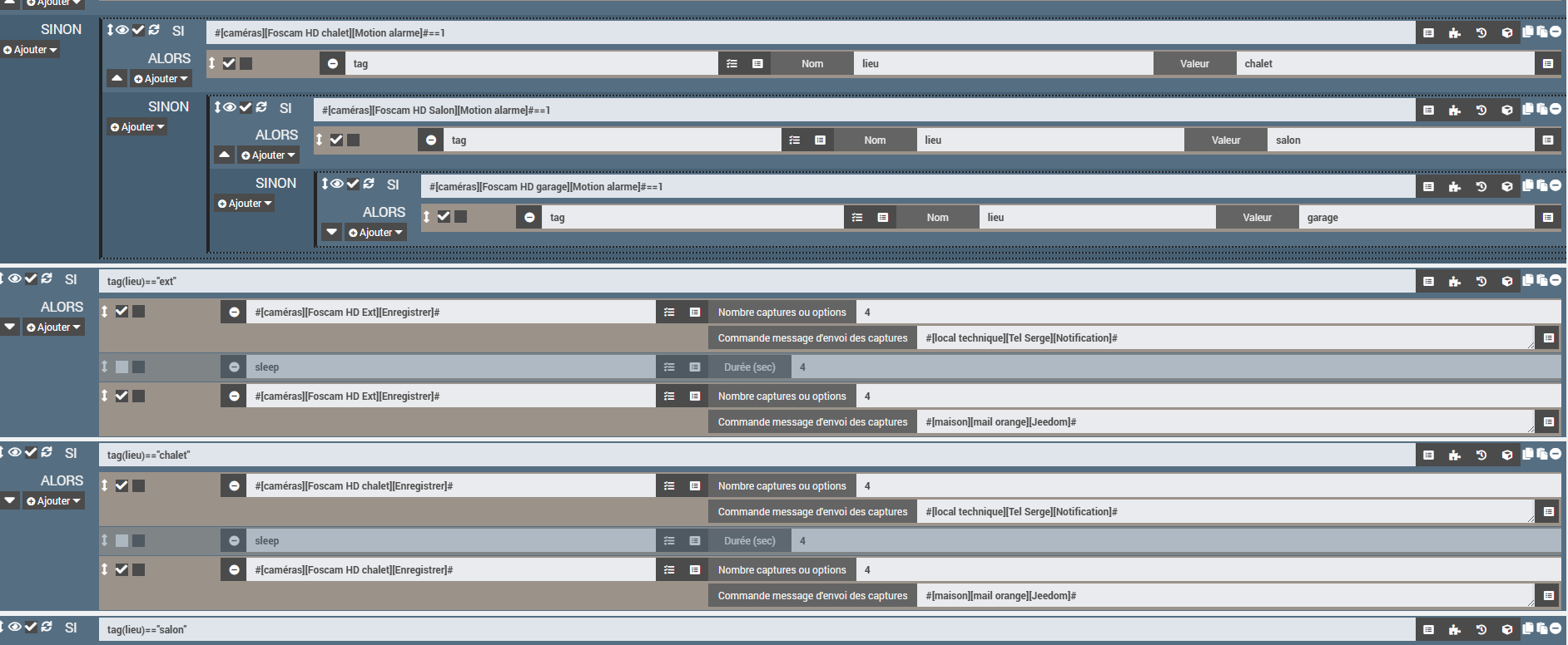 Lorsque la caméra du chalet et celle EXT détecte en même temps et envoi un mail, seul le mail ou la notif de l’une ou l’autre passe.