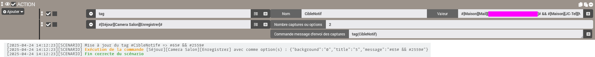 [2025-04-23 13:55:42][SCENARIO] - Exécution du sous-élément de type [condition] : if #[alarme][capteurs AR][capteur mouvement]#==1