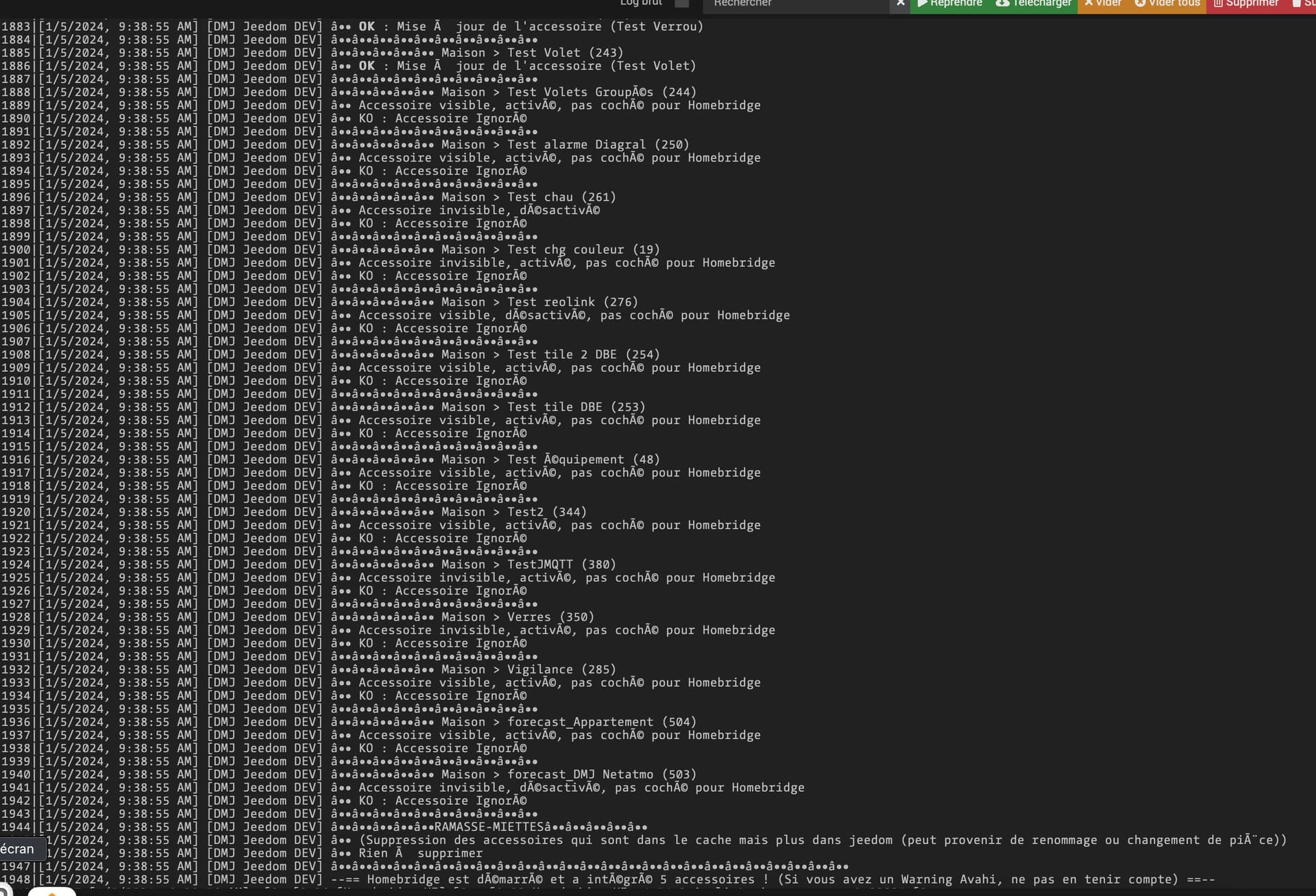 Je constate que les logs en mode debug sont mal formatés depuis peu « " » qui apparait partout (mise à jour mqttdiscovery ou mqtt2 en lien ?.. Il me semble que cela n’etait pas comme ça.