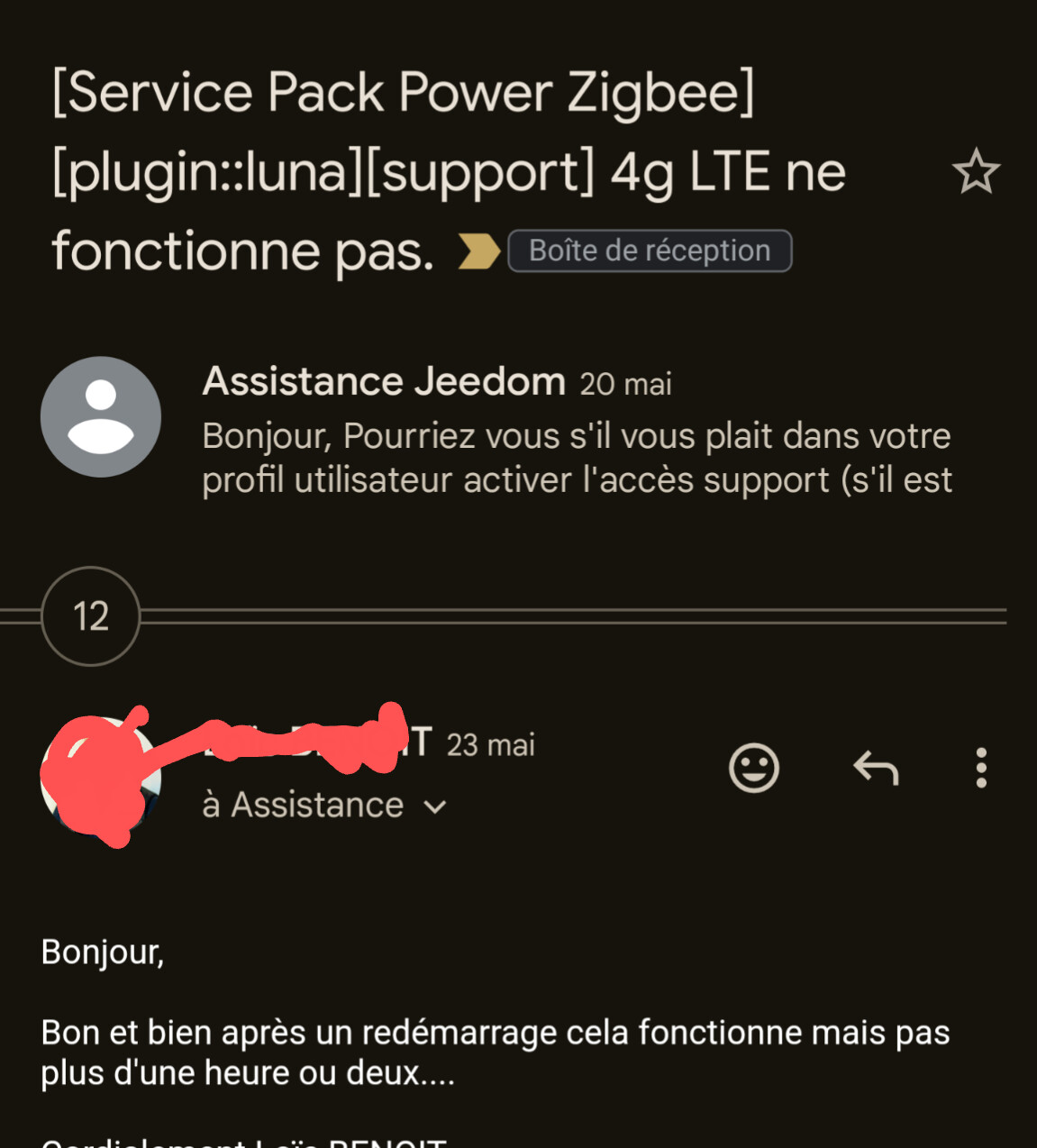 J’ai préparer un courrier pour Jeedom , afin de demander le remboursement de la box, je pars demain en déplacement, je compte envoyer le courrier à la semaine prochaine.