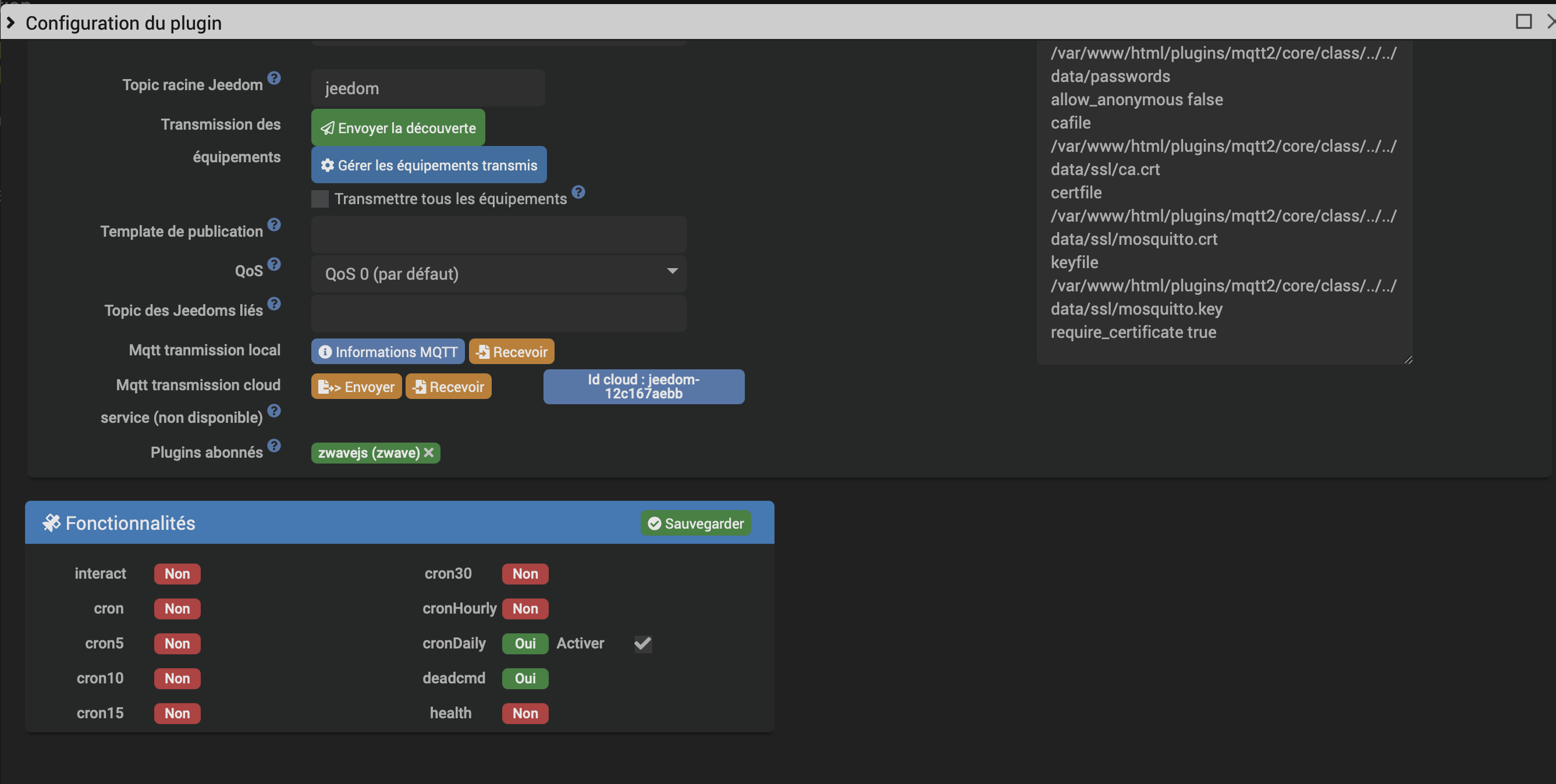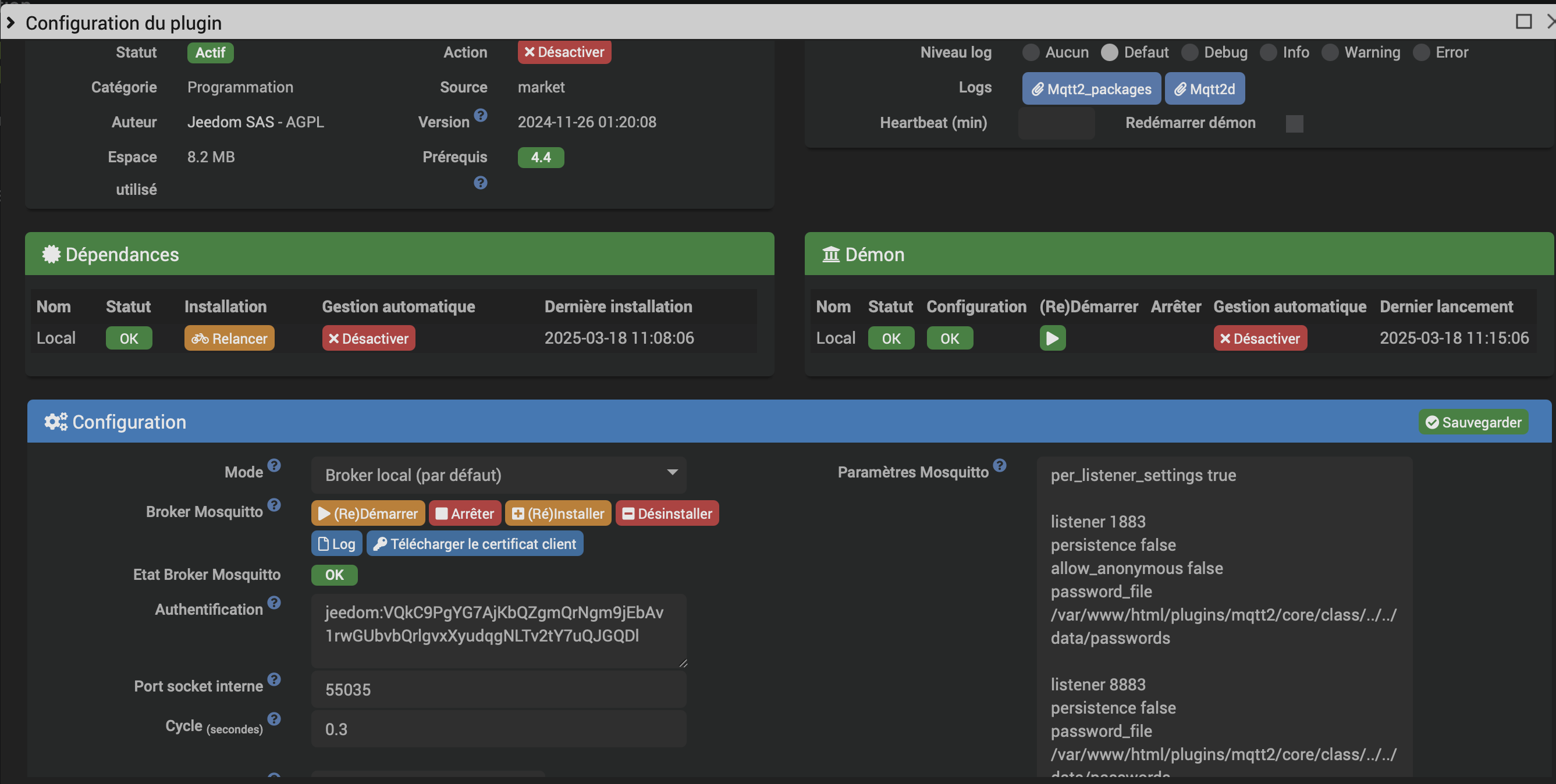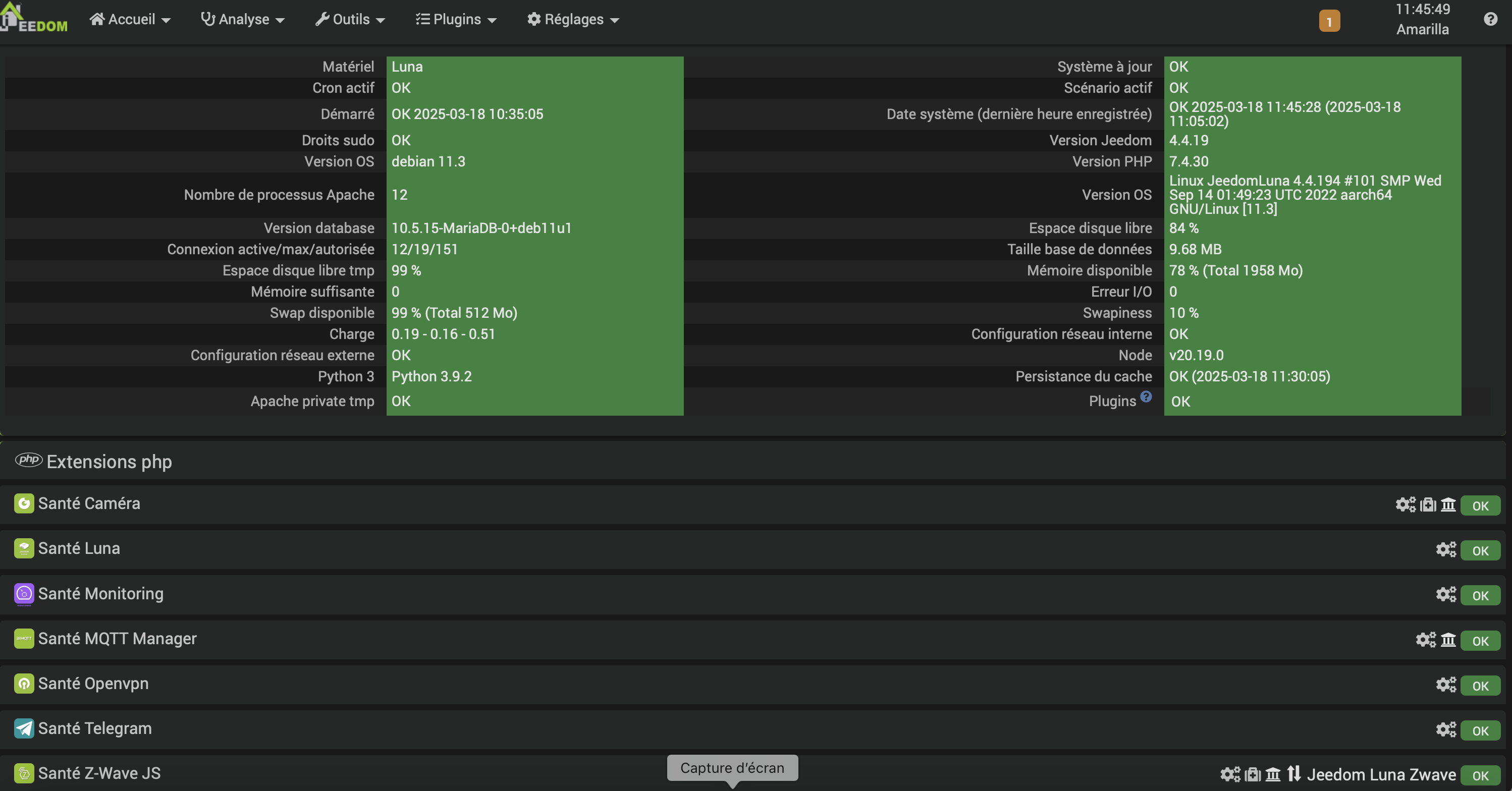 Case à cocher « Soft Reset » décochée, relance du calcul des dépendances sur les plugins mqtt puis zwaveJS effectués sans succès. Et chose étonnante, les périphériques zwave+ (2 « yeux », 2 switches 230V, un détecteur d’ouverture de porte et un bouton-poussoir) communiquent parfaitement avec la Luna… mais la ligne « Le driver…» est toujours là !
