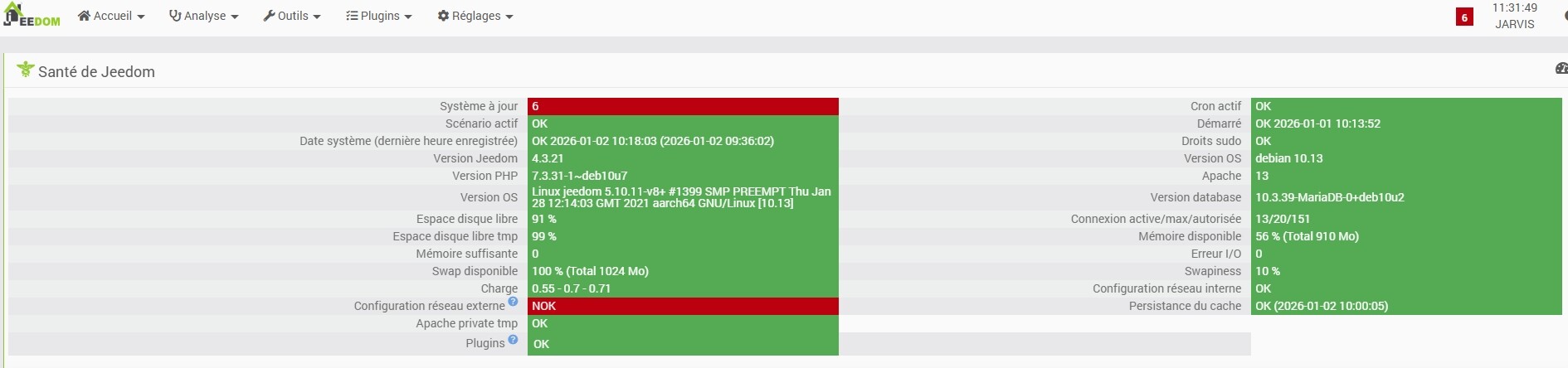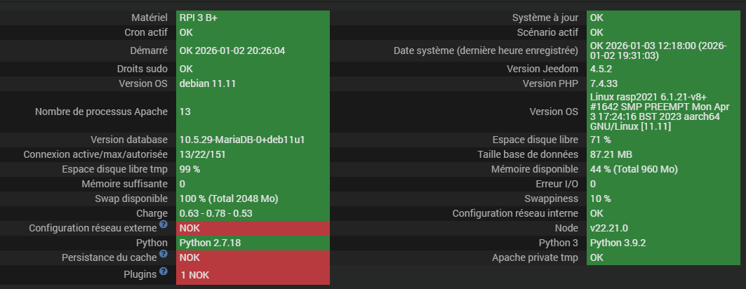 C’est le plugin « Jeedom Connect » est NOK. Les plugin vitaux sont OK