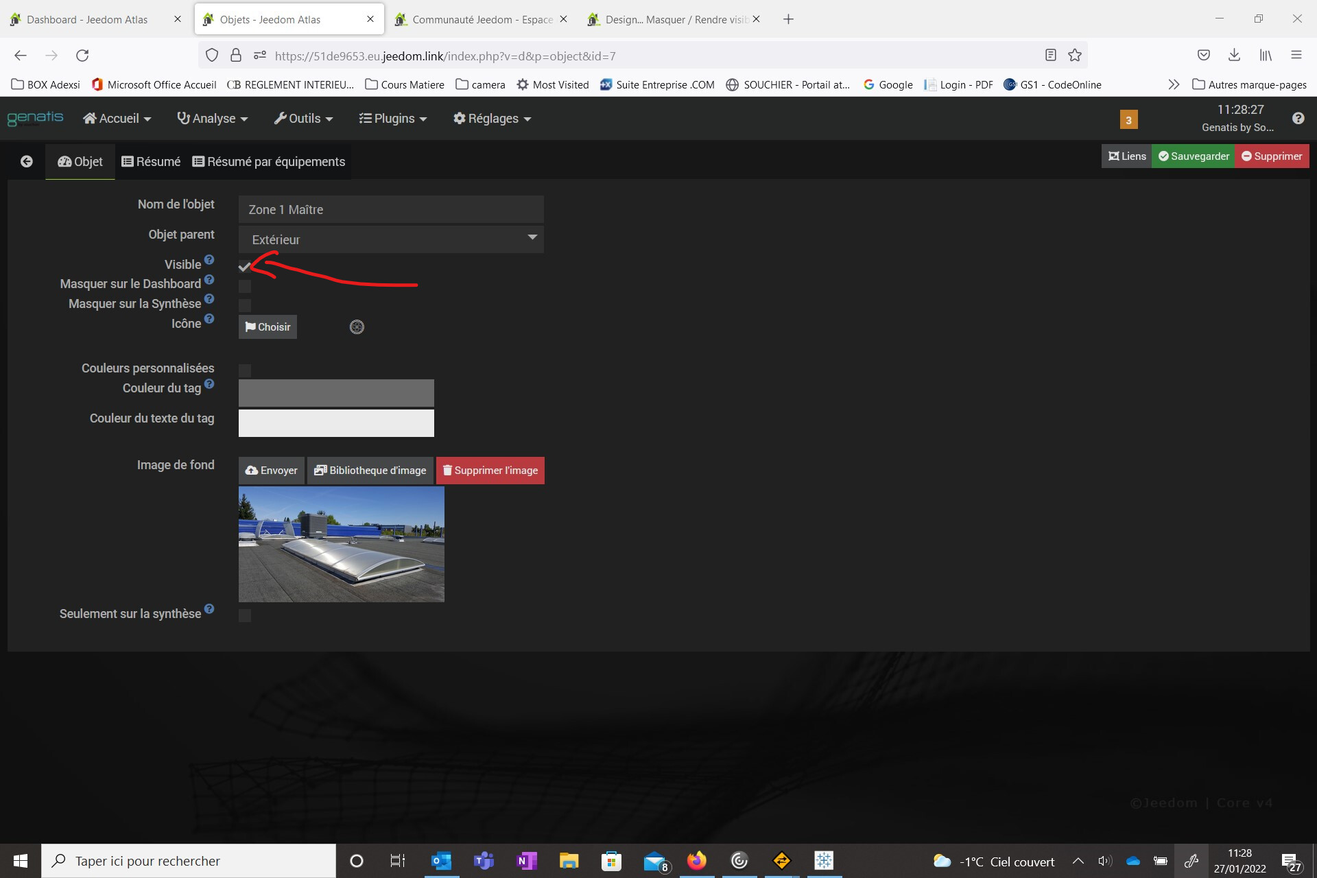 un comportement diffèrent pour jeeObject(), il semblerait que lorsqu’on utilise setIsVisible(0), la valeur mise en bdd est « null » et donc na aucun effet sur la visibilité de l’objet,
