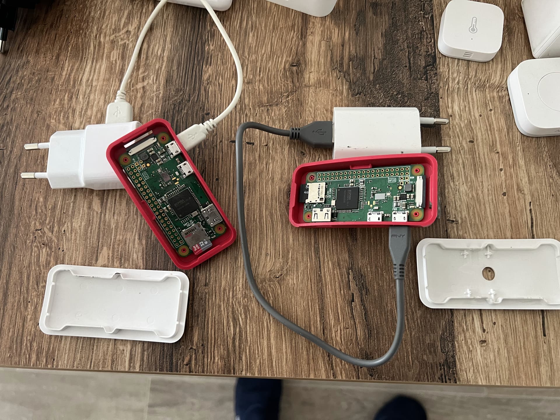 2x Pi 0 version Wifi (antenne BT créée sous Jeedom)+ carte SD + adaptateur alim + boitier adapté