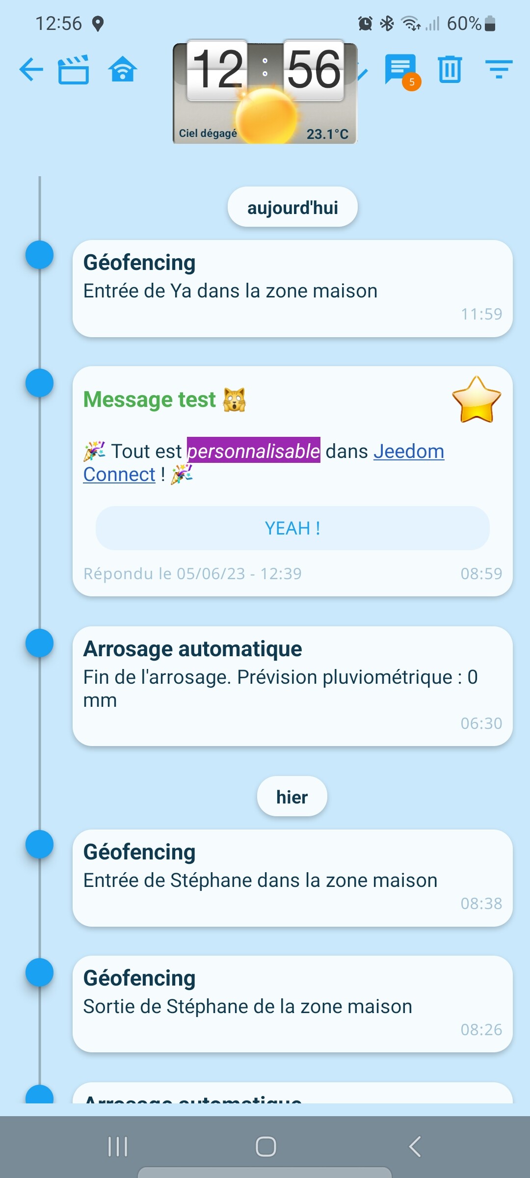 ou si jamais tu appuies tu le bouton tester en face de la commande sur ton équipement