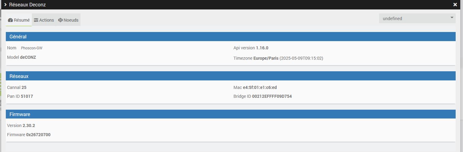 Peux tu poster la copie écran de la page Réseaux Deconz/Resumé ?