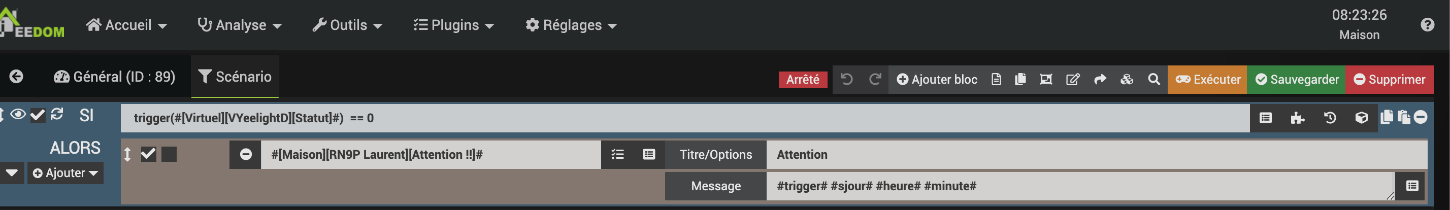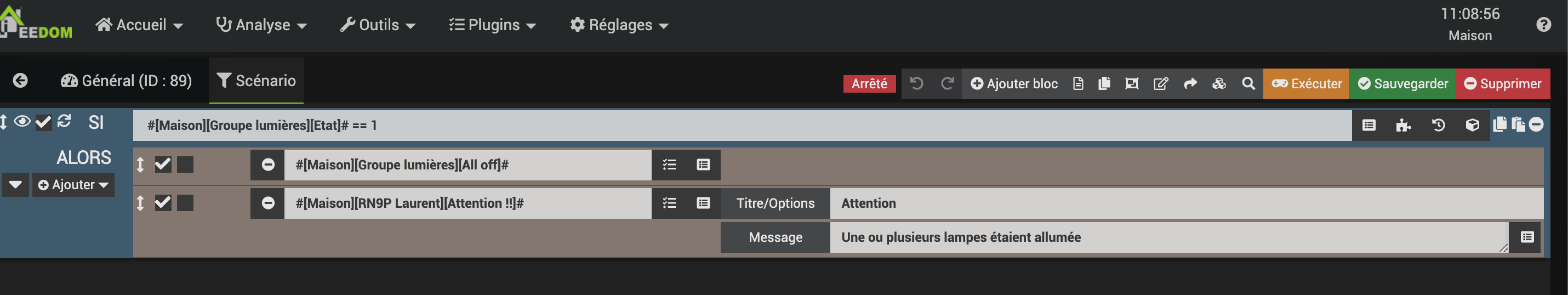 Après je sais pas pourquoi tu veux recevoir un message pour les lumières, autant faire que ton scénario les éteins quand tu n’es pas la.