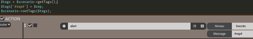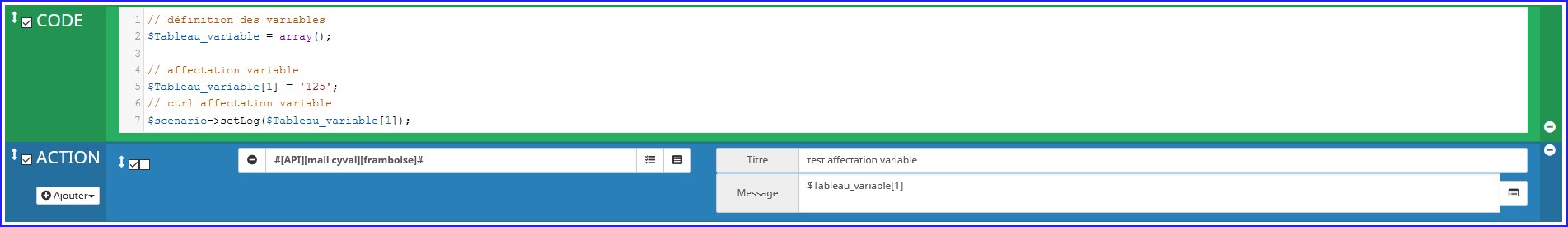 Bonjour ! Normal tu mélange un peux tout la. Soit dans ton code php tu envoie la valeur de ta variable calculer dans une variable jeedom, puis tu l’envoie via le bloc code action. Soit tu fais ta commande d’envoie d’email dans ton code php.