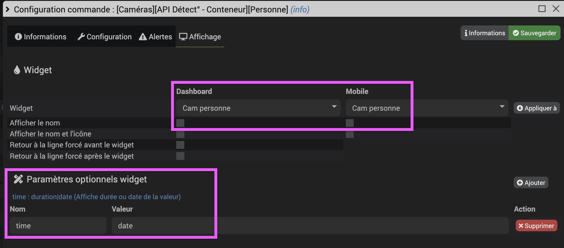 Avec le « time | date » pour avoir l’info de temps de la dernière détection :