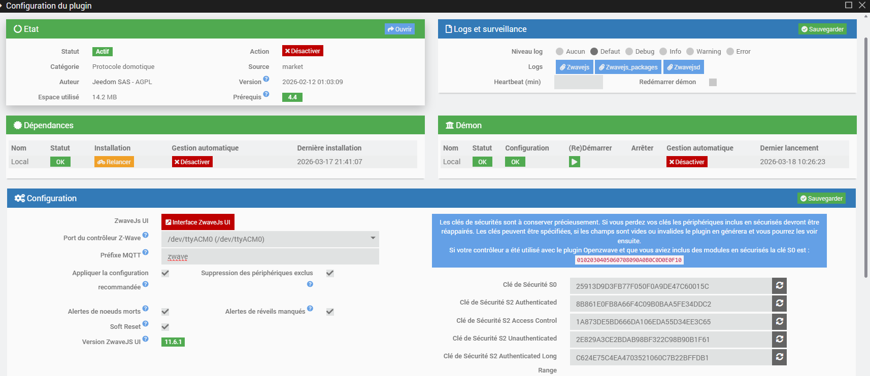 J’ai installé zwavejs sur l’atlas (puisque openzwave est obsolète), installé les dépendances, lancé le démon. Tout semble OK.