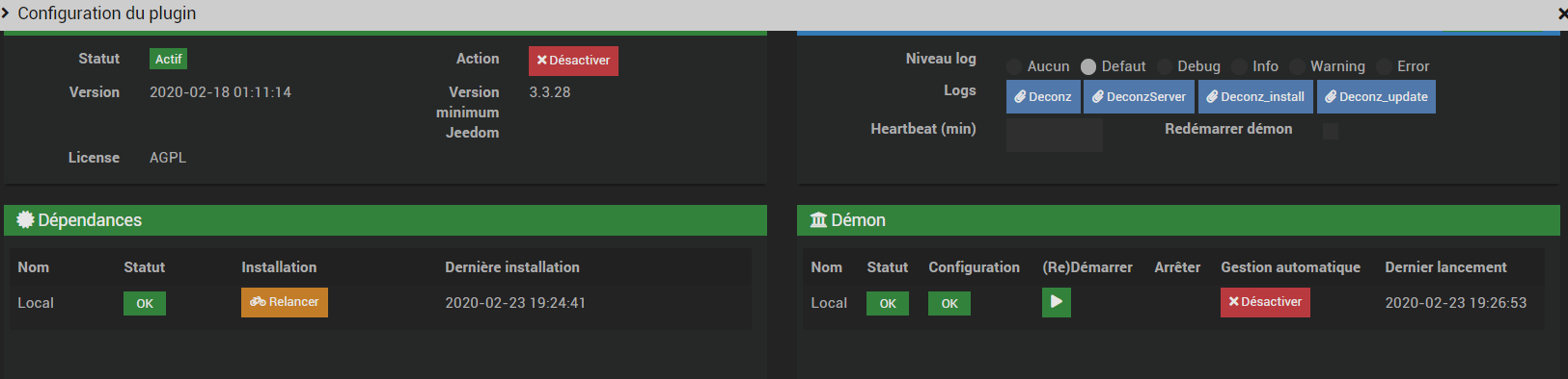 Tout fonctionne plutôt bien sous jeedom sauf le plugin deconz (dépendances et demon ok et périphériques ok) sauf que je ne vois plus rien sous Phoscon .