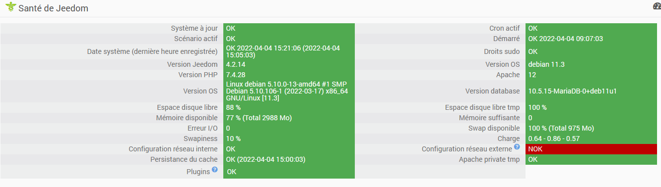 J’ai essayé de lancer des réinstallations des dépendances et de relancer les Démon mais il reste toujours NOK.