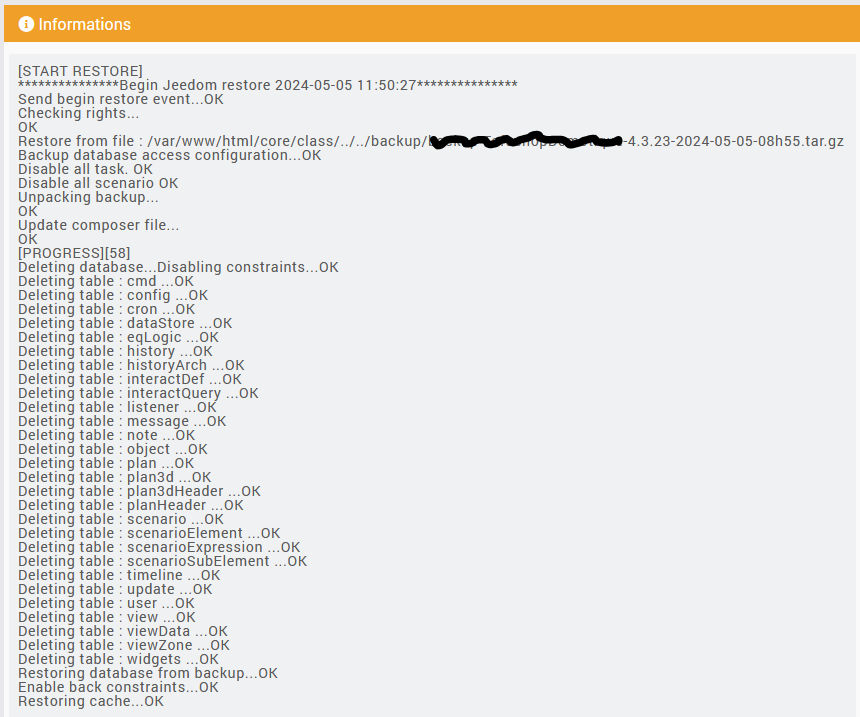 Restore from file : /var/www/html/core/class/../../backup/backup-XxxxxXxxx-4.3.23-2024-05-05-08h55.tar.gz