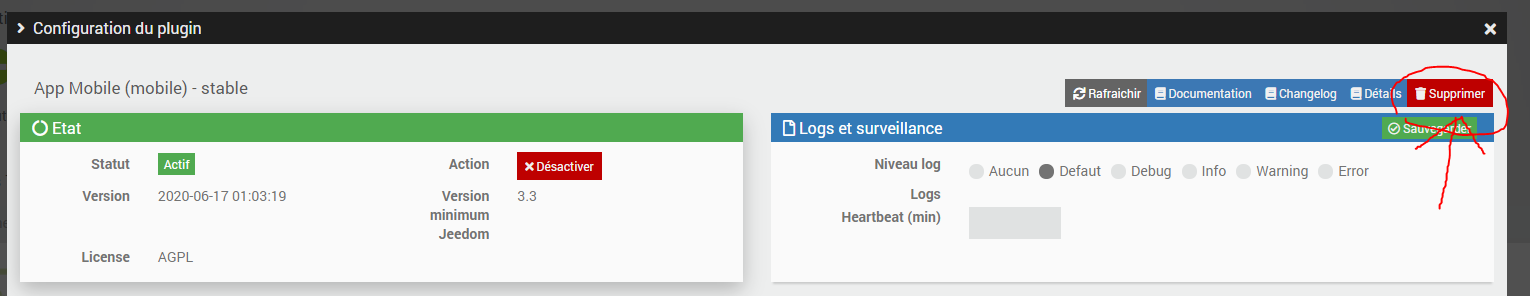 En allant dans la page du plugin en question → Configuration du plugin → Supprimer