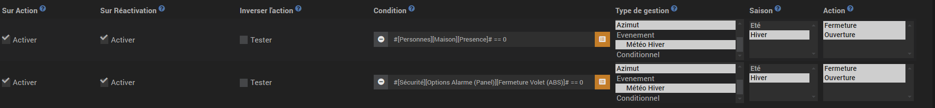 J’ai mis dans conditions pour ouverture & fermeture que personne ne doit être là, que le forçage n’est pas actif.