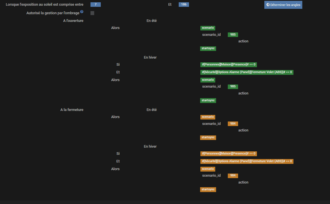 Et pour finir, j’ai mis une gestion azimut qui doit gérer le volet entre 7 et 186.