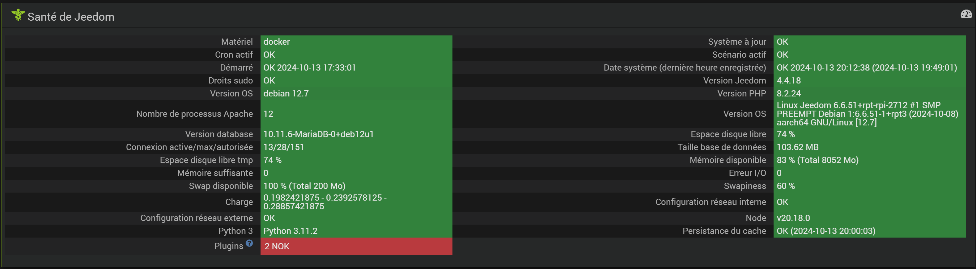 Donnez systématiquement la page santé jeedom lors d’une demande.