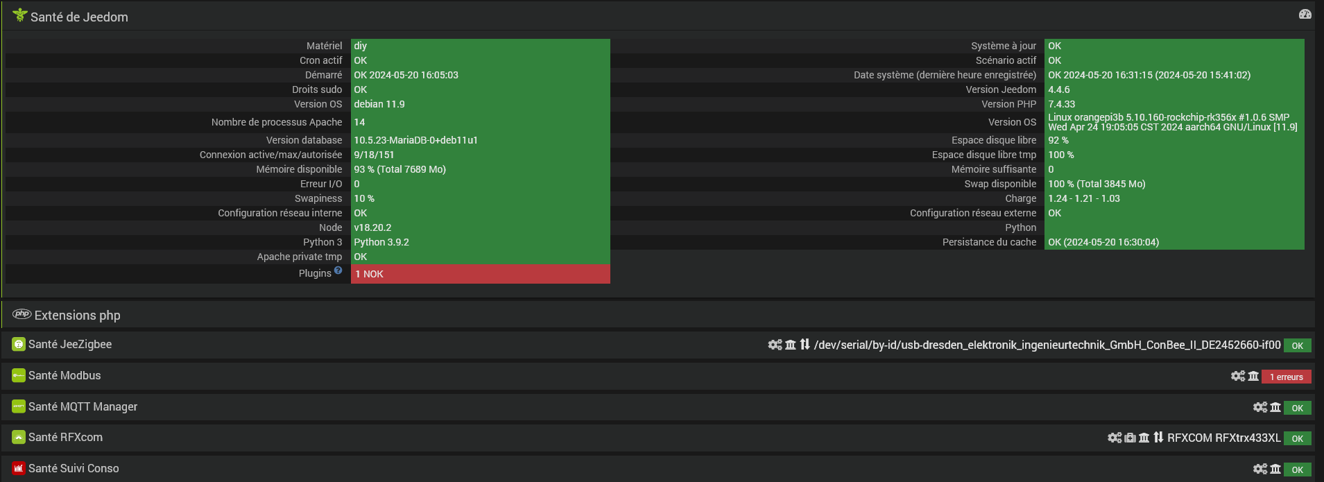 Tous les autres plugins et fonctions installées jusqu’ici OK. RFXcom par ex.