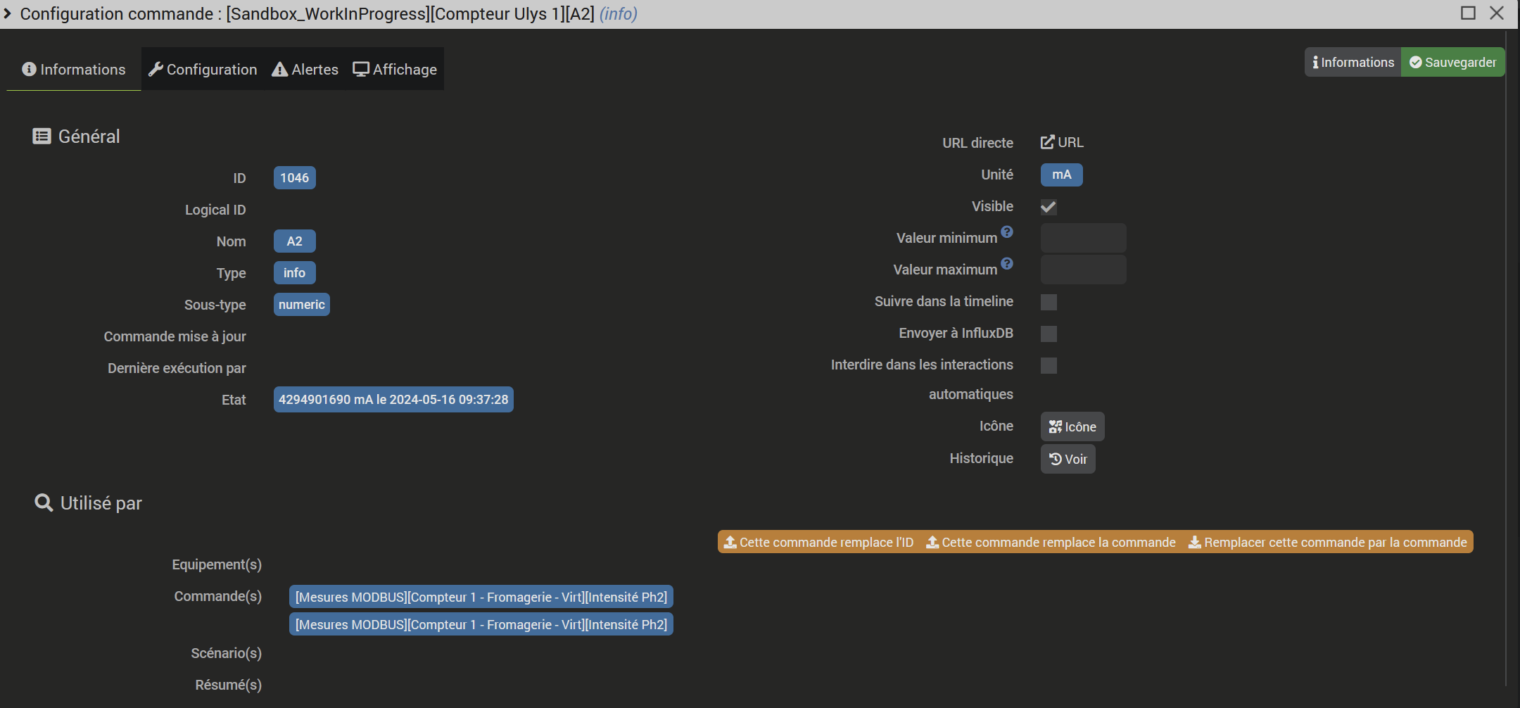 merci pour cette piste, je vais tester cela quand le soleil éclairera les PPV et que j’aurai une valeur en entrée sur jeedom, mais mon plan est de changer l’entrée en type « autre » ou « binaire »