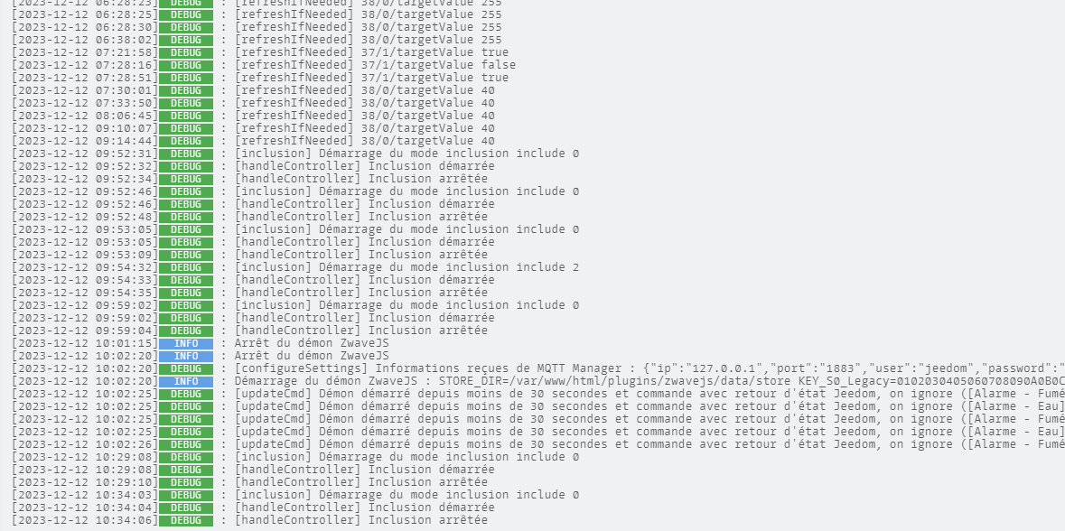 2023-12-13 09:28:04.740 DEBUG MQTT: Publishing to zwave/_EVENTS/ZWAVE_GATEWAY-Jeedom/controller/inclusion_started: { data: [ true, [length]: 1 ] } with options { qos: 1, retain: false }