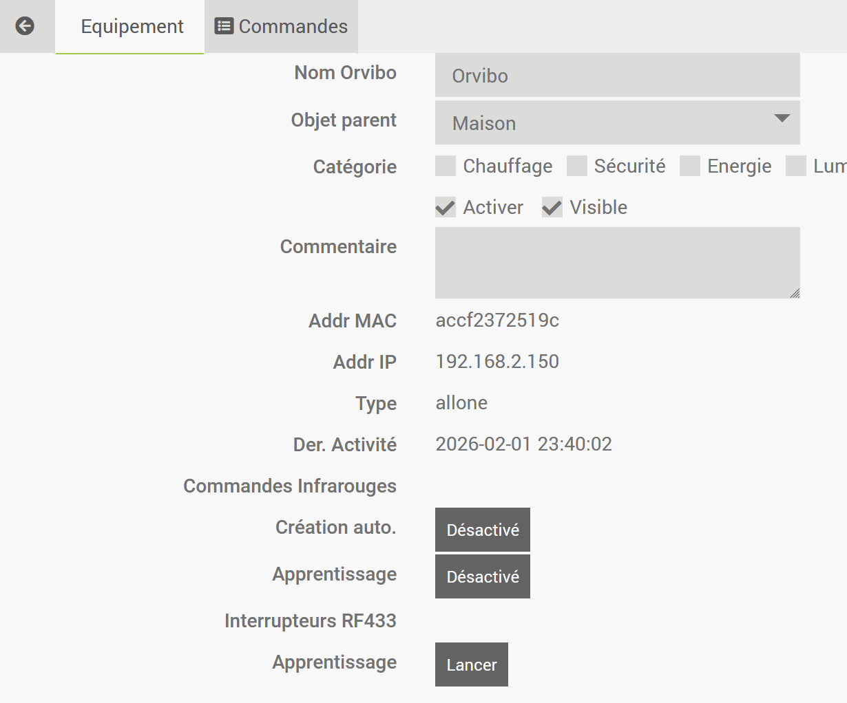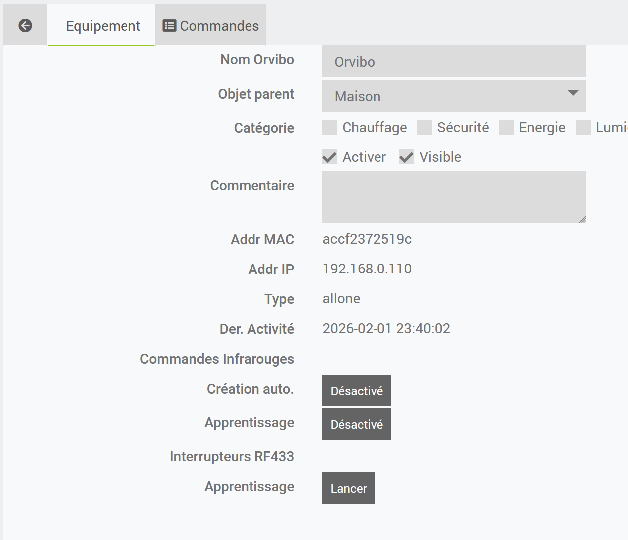 Mais j’ai oublié que l’orvibo IR etait en IP non modifiable classiquement.
