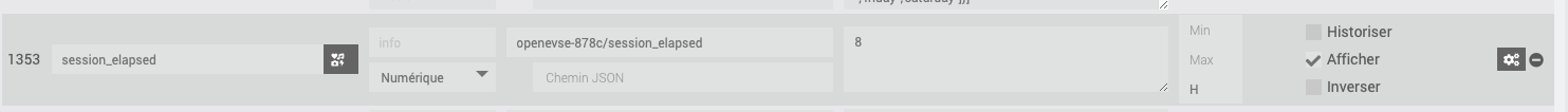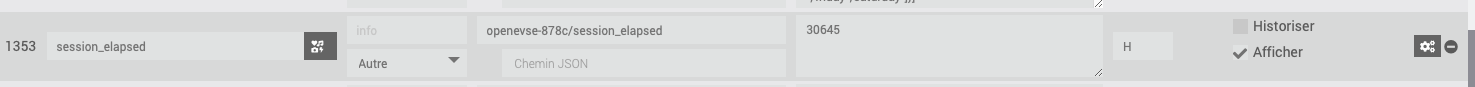 la valeur sur la commande de l’équipement est indiquée en secondes, pour pouvoir la modifier je dois passer en « numérique » et la ça m’affiche « 17 » (sans calcul) ce qui ne rime à rien pour moi car le temps affiché est d’environ 30600 secondes (8,5 heures) ; j’ai modifié le widget et j’ai toujours un format sans les minutes indiquées.