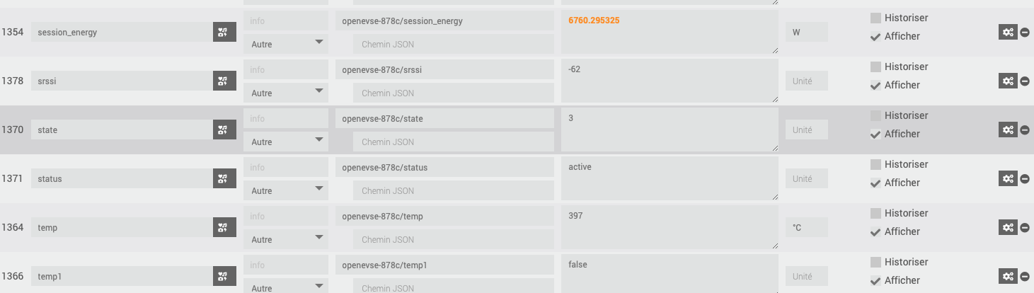 au dessus on voit la valeur en Watt que j’aimerais convertir en KW sur le virtuel.