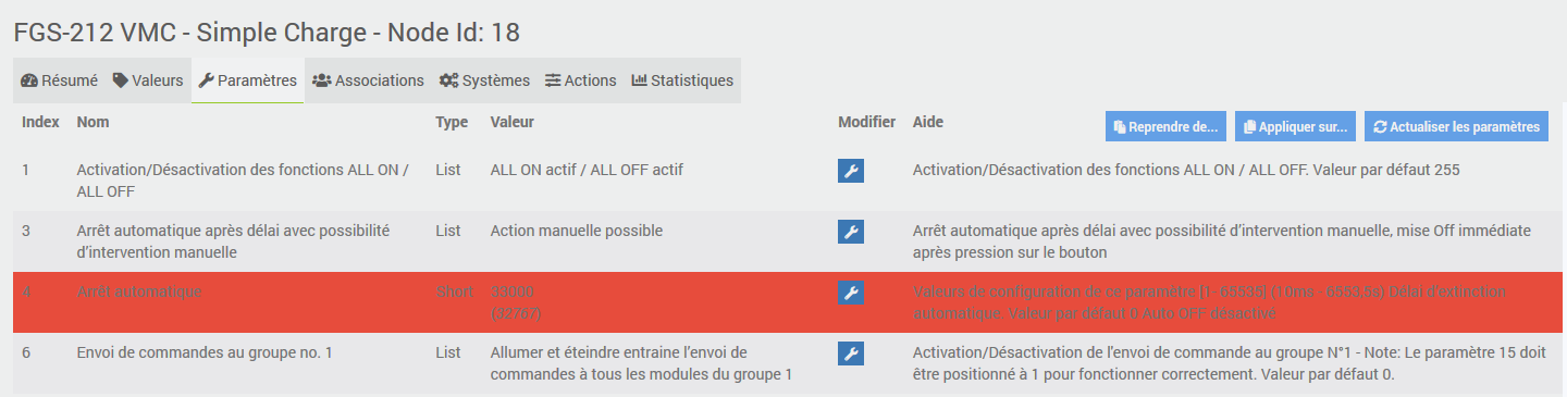 Je commande une VMC avec et je souhaite utiliser le parametre 4 arret automatique.
