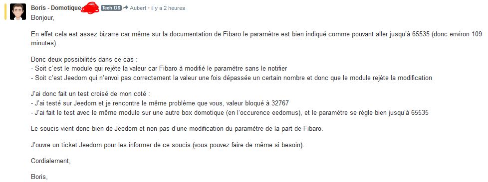 D’après Boris d’un magasin connu de vente de matériel Domotique Stoxx le problème viendrait de Jeedom car il a essayé sur Endomus mais le probleme n’apparait pas