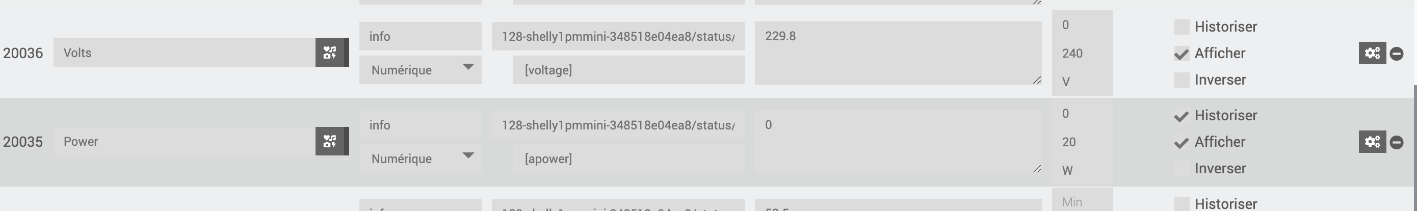 la lumière sera alors toujours commandée par l’inter manuel et le plugin Jmqtt (il y en a d’autre pour Shelly mais Jmqtt devient la règle) fera remonter la puissance et un scénario ou virtuel basé sur puissance > 0 sera le déclencheur , par exemple voici ce que remonte entre autre Jmqtt pour ce module:
