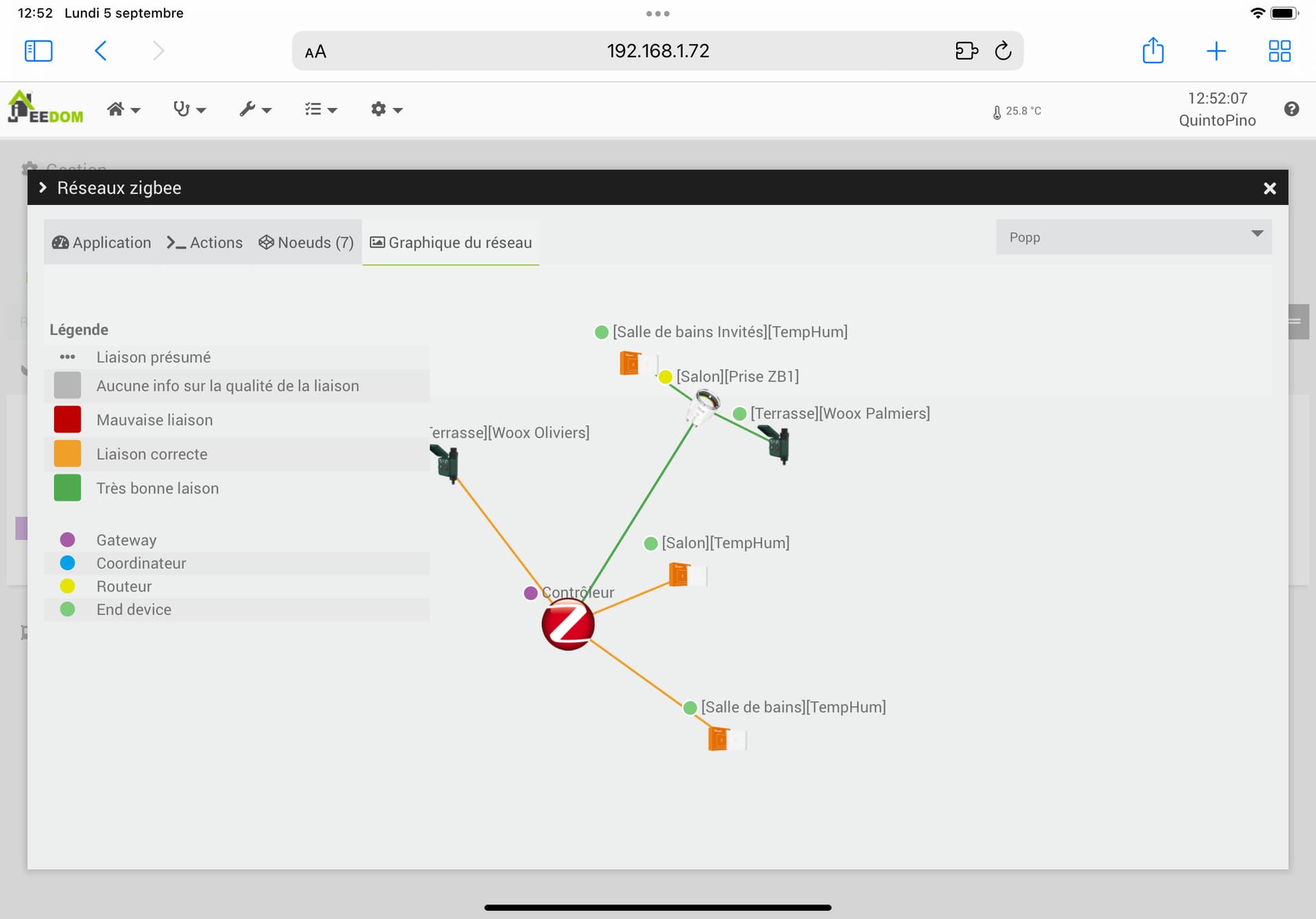 Au niveau du menu zigbee, la disparition de la prise ne se fait pas immédiatement et le graphique du réseau et des rssi etc est inchangé en tous cas le temps de mon test :