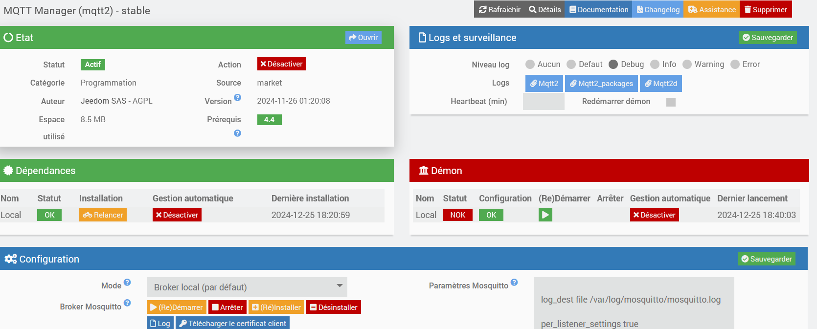 Quand je vais dans Mqttmanager le demon est lui aussi stoppé
