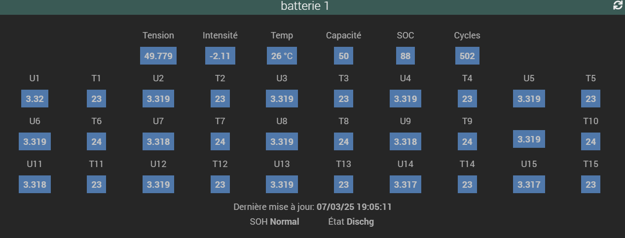 Bonjour à tous, j’avais fait il y a quelques temps un programme python pour aller chercher les infos des batteries Pylontech installées chez moi.