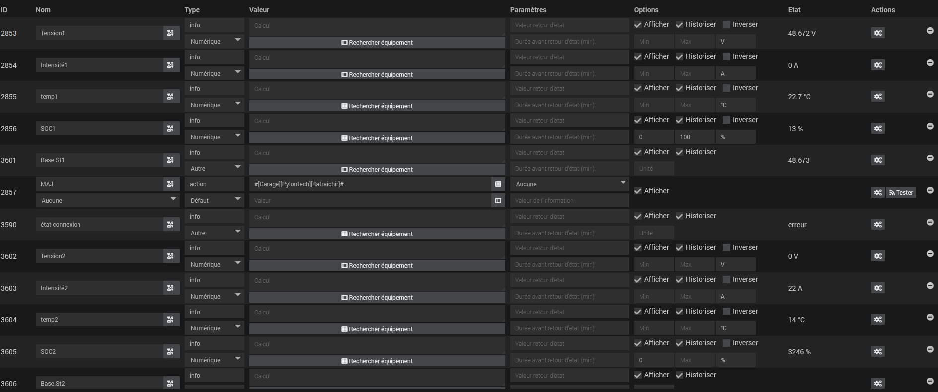 je mets 1 j’ai l’affichage de la batterie 1 et si je mets 2 j’ai l’affichage de la batterie 2 (dans les bon champ).