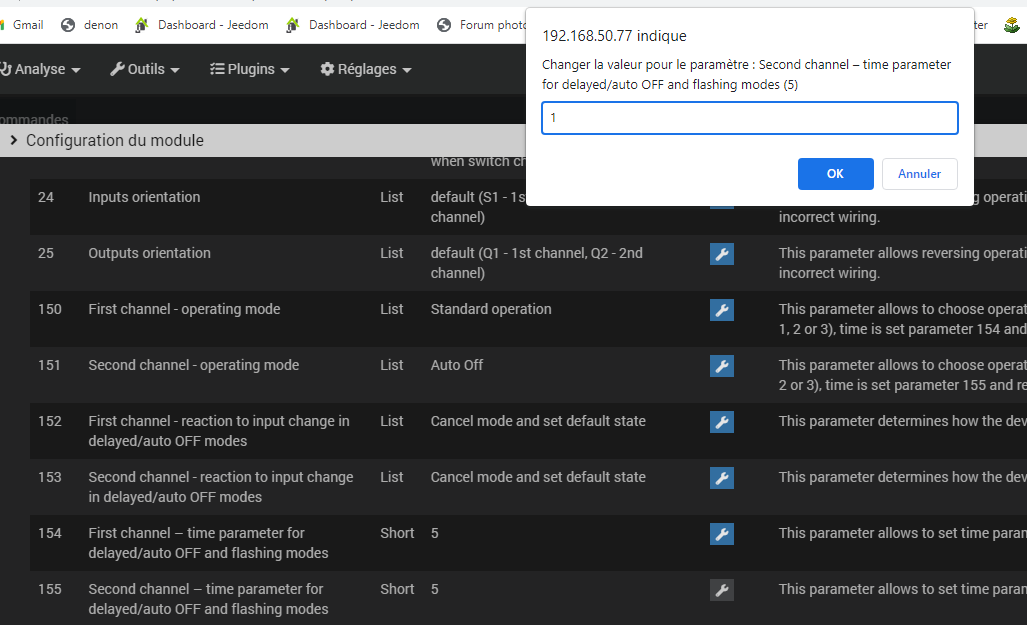 Le câblage me semble bon (voir photo)(branchement pour test), pouvez me dire pourquoi les actions via Jeedom na aucun effet ?.