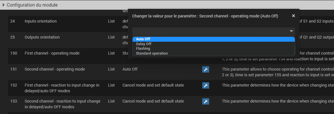 Il faut que ta sortie utiliser fonctionne en auto off avec un temps court pour simuler l’utilisation d’un bouton poussoir .