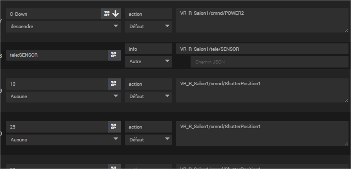 Je ne sais pas si c’est exactement le core de Jeedom, mais pour moi ce n’est pas relatif à un plugin MQTT particulier mais plutôt à l’interface de jeedom. Ce n’est pas un bug car tout fonctionne très bien, je voulais juste savoir si il y avait une facilité particulière, comme une variable (style %Topic%) par exemple qui permettrait d’éviter de déclarer dans chaque commande le topic déjà déclaré dans la description de l’équipement.