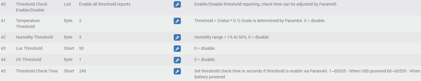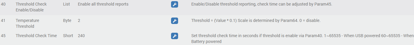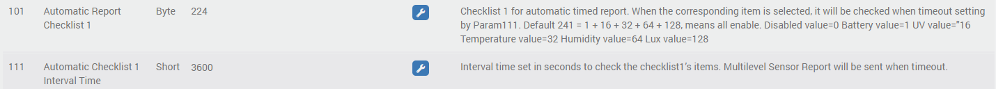 Je reviens avec mon multisensor 7 ! Je pense que j’ai actuellement un problème de périodicité de remontée d’information sur la température. En effet, elle ne remonte qu’automatiquement toutes les heures grâce aux paramètres ci-dessous: