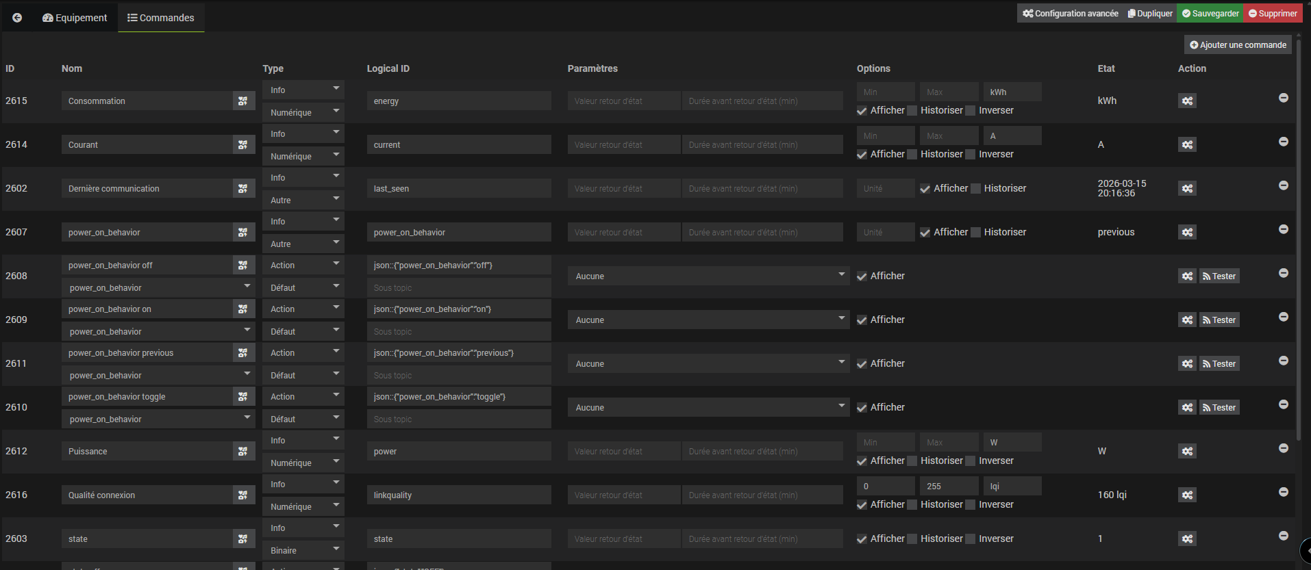 J’ai installé une prise Schneider Electric Mureva EVlink qui remonte bien dans mon jeedom grâce à zigbee2mqtt. Je peux bien allumer/éteindre à distance mais aucune information de type conso ou puissance ne remonte. Les valeurs restent vident…