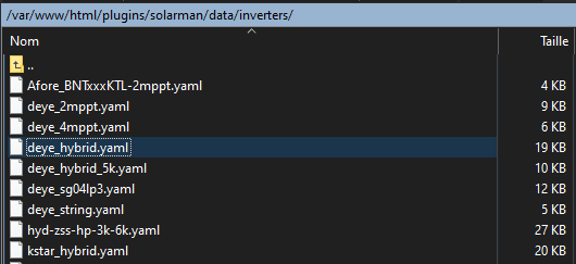 J’ai un onduleur hybride Deye SUN 5K SG03LP1-EU, alors j’ai utilisé le fichier deye_hybrid.yaml.